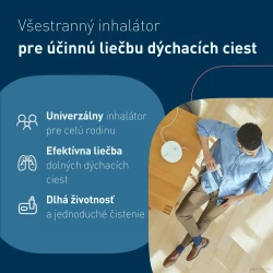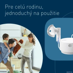 Jedná sa o všestranný inhalátor ideálny pre viacerých používateľov. Je dodávaný s pohodlnou maskou s mäkkými okrajmi vo veľkosti pre dospelých a deti. Jedno zariadenie, ktoré môže používať celá rodina. Inhalátor je navrhnutý na časté používanie viacerými členmi rodiny a ľahko sa čistí.