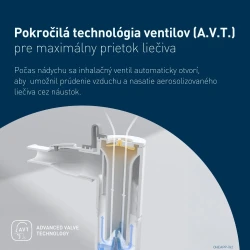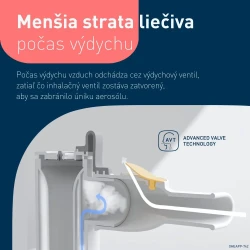 - unikátny dvoj-ventilový náustok maximalizuje množstvo liečiva počas nádychu a minimalizuje straty liečiva počas výdychu.