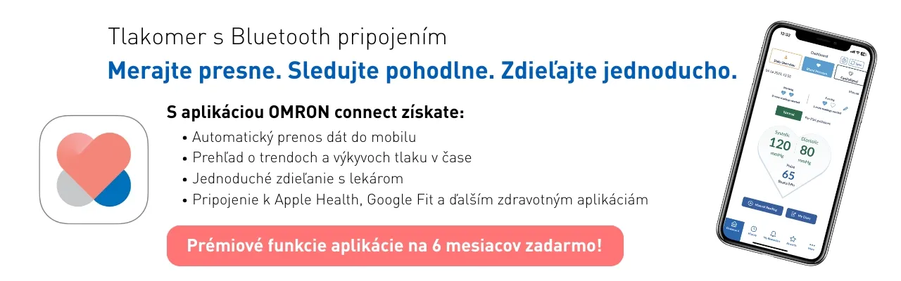 - Bluetooth pripojenie k smartfónu a aplikácii OMRON connect - umožní jednoducho sledovať vaše merania a zdieľať ich napríklad s lekárom.