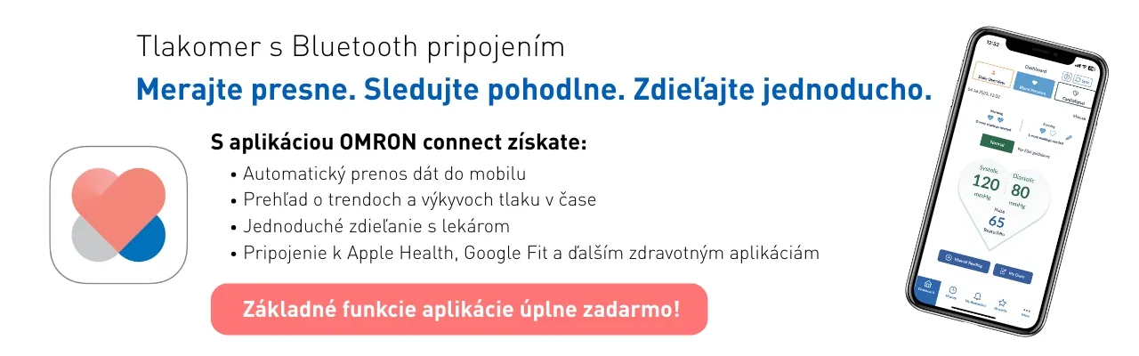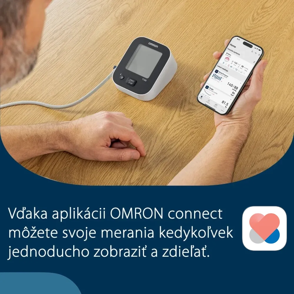 - Bluetooth pripojenie k smartfónu a aplikácii OMRON connect - umožní jednoducho sledovať vaše merania a zdieľať ich napríklad s lekárom