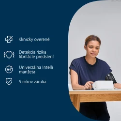 - systém Intelli Sense pre komfortné natlakovanie - minimalizuje tlak na pažu a skracuje každé meranie krvného tlaku