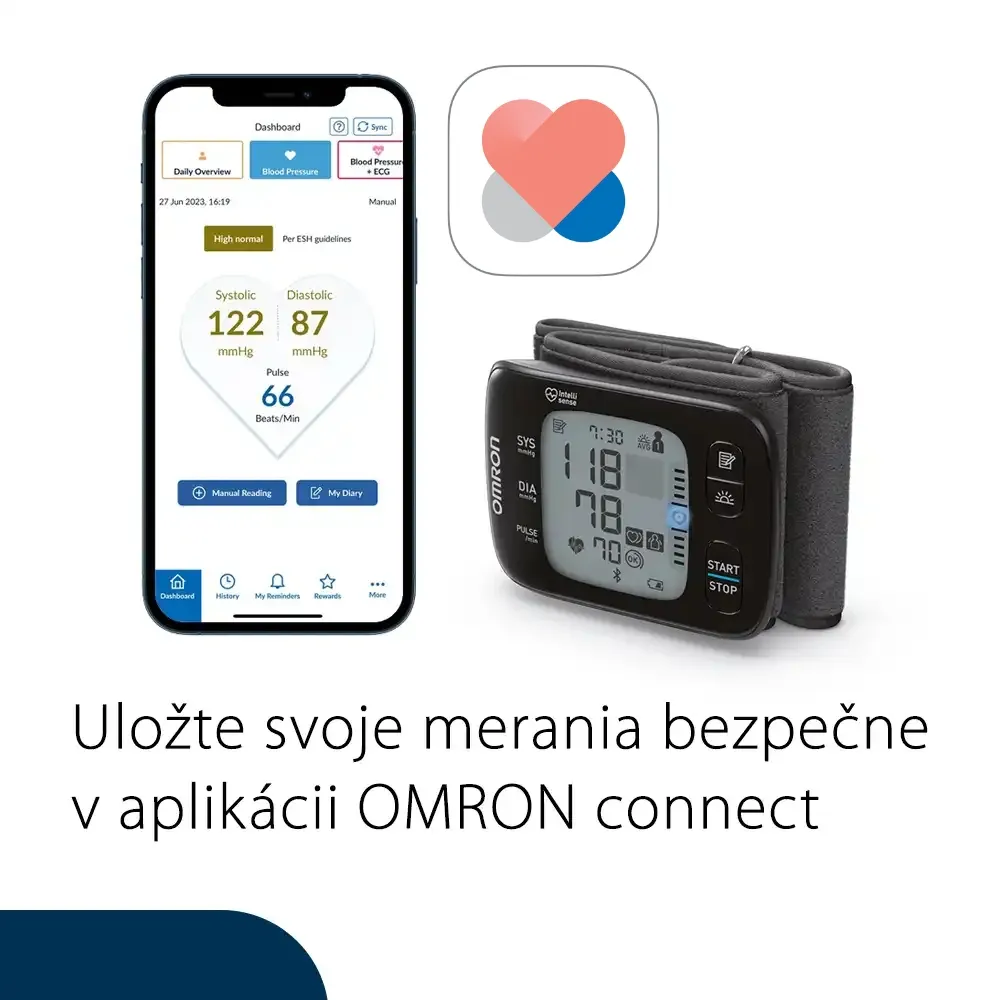 - Bluetooth pripojenie k smartfónu a aplikácii OMRON connect - umožní jednoducho sledovať vaše merania a zdieľať ich napríklad s lekárom